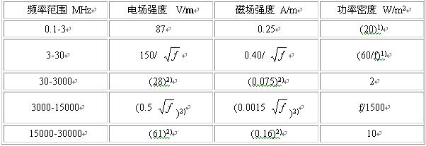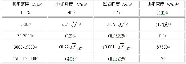 2.2.4 对于脉冲电磁波,除满足上述要求外,其瞬时峰值不得超过表中1、2所列限值的1000 倍。
