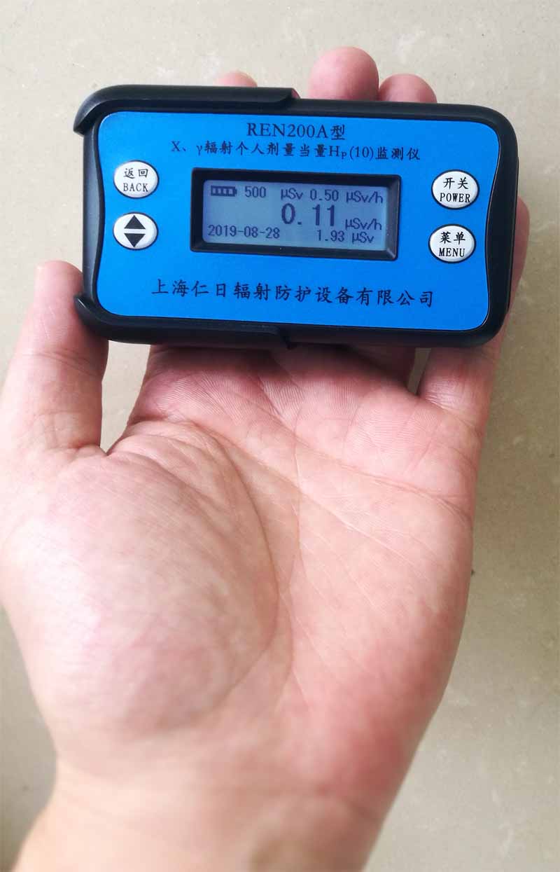 REN200A型X、γ辐射个人剂量当量HP(10)监测仪(简称:个人剂量报警仪)内置高灵敏度盖格计数管为探测器,主要用来监测各种放射性工作场所的X、γ以及硬β射线的辐射,具有响应快,测量范围宽的特点。能显示工作场所的剂量当量率和累积剂量,更换电池时,日期及累积数据能永久保存。可选配RenRiPersonal个人剂量管理软件,该软件可存储多个人的历史数据,能记录日累积、月累积、年累积、辐照时长、计算平均剂量率、扣除或不扣除本底辐射,且以文字和图谱的方式展现数据。广泛应用于核电站、加速器、钢铁、化工、同位素应用、工业X、γ无损探伤、放射医疗、钴源治疗、γ辐照、放射性实验室、核设施周围环境监测等领域中的工作人员进行个人安全防护监测及放射性提示。